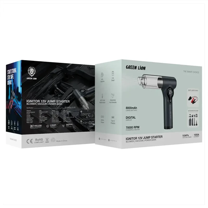 جامپ استارتر Green Lion Ignitor 12V یک ابزار چندکاره و کاربردی برای رانندگانی است که به دنبال امنیت، کارایی و آمادگی در شرایط مختلف هستند. این دستگاه علاوه بر جامپ استارتر 12 ولت، به‌صورت هم‌زمان نقش پمپ باد، جاروبرقی، دمنده گردوغبار و پاوربانک را ایفا می‌کند و به یک همراه کامل برای خودرو تبدیل شده است.