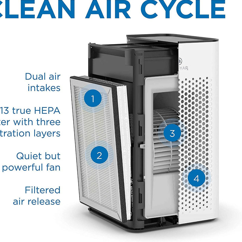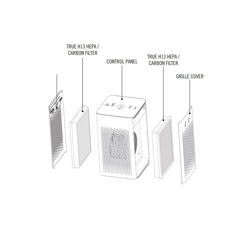 فیلتر سه‌مرحله‌ای شامل پیش‌فیلتر، True HEPA H13 و فیلتر کربن فعال
