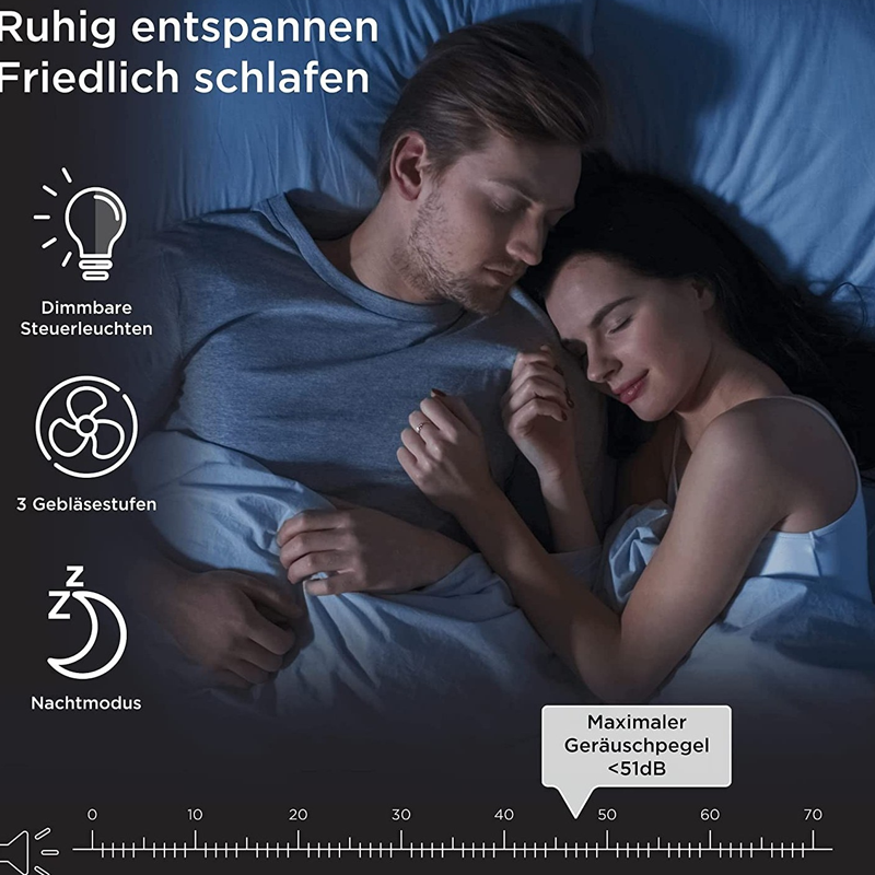 طراحی کم‌صدا و مناسب برای استفاده شبانه، این دستگاه را به گزینه‌ای ایده‌آل برای اتاق خواب تبدیل کرده است. همچنین وجود قفل کودک برای افزایش ایمنی و نشانگر زمان تعویض فیلتر، استفاده از دستگاه را ساده و مطمئن می‌کند.