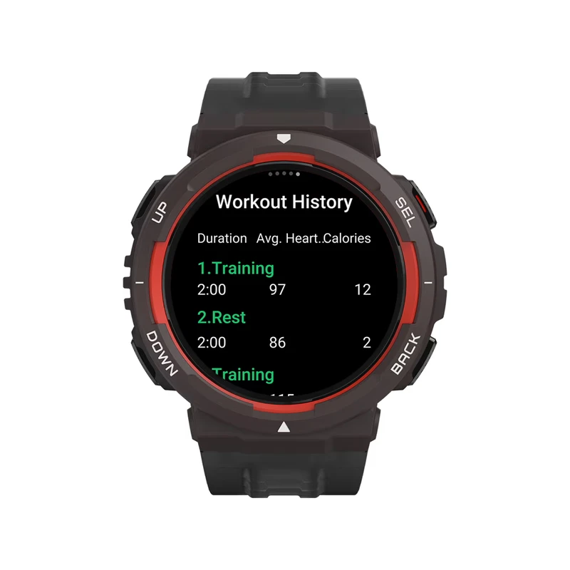 نمایشگر TFT این ساعت مبتنی بر فناوری LCD است و با ارائه رنگهای شفاف، کنتراست مطلوب و زاویه دید مناسب، تجربه دیداری خوبی فراهم میکند. وضوح 360×360 پیکسل باعث نمایش دقیق و بدون شکستگی تصویر میشود. اندازه 1.32 اینچی و طراحی گرد نیز با ظاهر اسپرت ساعت کاملاً هماهنگ است.