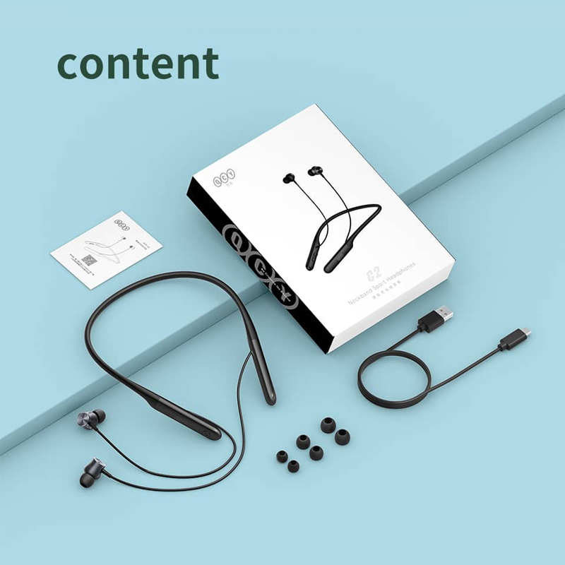 هندزفری QCY C2 طراحی ساده اما شیک دارد. بدنهی کاملاً مشکی با وزن تنها ۳۴ گرم روی گردن احساس سنگینی ایجاد نمیکند و ساختار منعطف و نرم آن دوام بالایی دارد و در استفاده طولانی باعث خستگی گردن نمیشود.