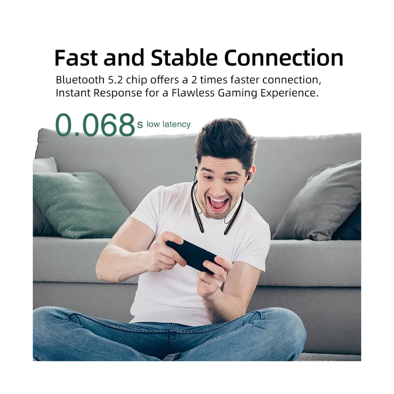 QCY C2 گزینهای مناسب برای بازی نیز محسوب میشود. این هندزفری با بهرهگیری از بلوتوث نسخه 5.2 اتصال سریع و پایدار را فراهم کرده و از قطع و وصل شدن جلوگیری میکند.