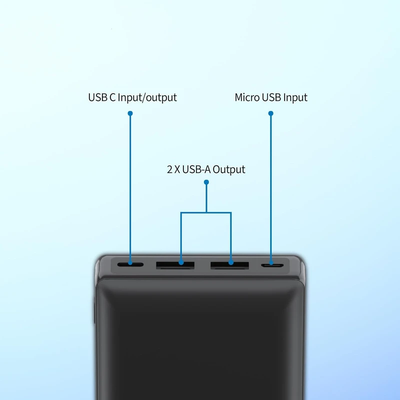 • ظرفیت : ظرفیت بسیار بالا ۲۰۰۰۰ mAh برای شارژ طولانی مدت دستگاه‌ها