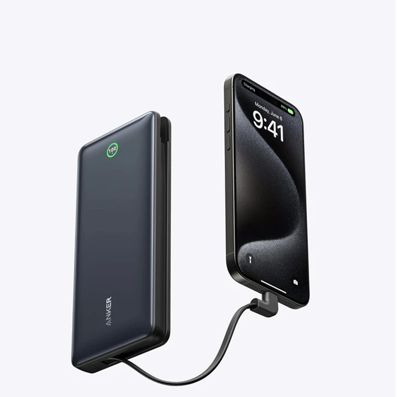 یکی از مهم‌ترین مزیت‌های Anker A1387، کابل USB-C داخلی با طراحی زاویه‌دار ۹۰ درجه است که داخل بدنه پاوربانک قرار می‌گیرد.
