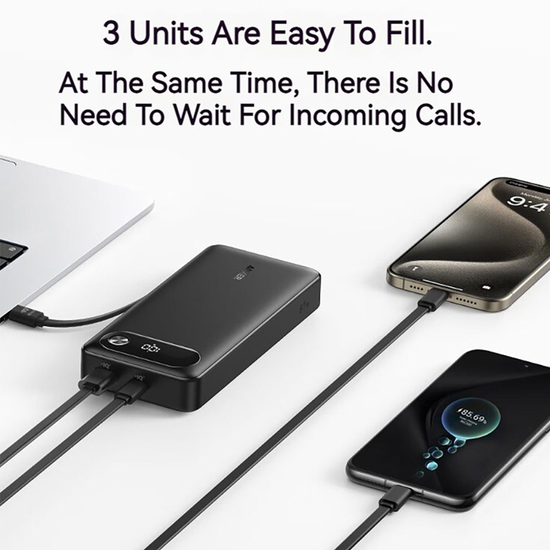 پاوربانک A1383 قادر است توان ۸۷ وات را بین سه دستگاه تقسیم کند. خروجی ۶۵ وات آن برای شارژ سریع لپتاپهایی مانند مکبوک پرو ۱۴ اینچی کافی است و در کمتر از ۴۰ دقیقه تا ۵۰٪ شارژ میشود. همزمان میتوانید گوشی، تبلت یا کنسول بازی خود را نیز بدون افت سرعت شارژ کنید. فناوری مدیریت هوشمند انرژی انکر تضمین میکند که هر دستگاه دقیقاً به اندازه نیاز خود انرژی دریافت کند — مناسب برای دانشجویان، حرفهایها و افرادی که همیشه در حال حرکت هستند.