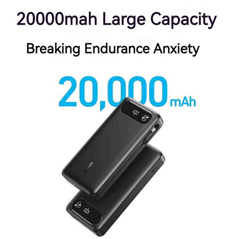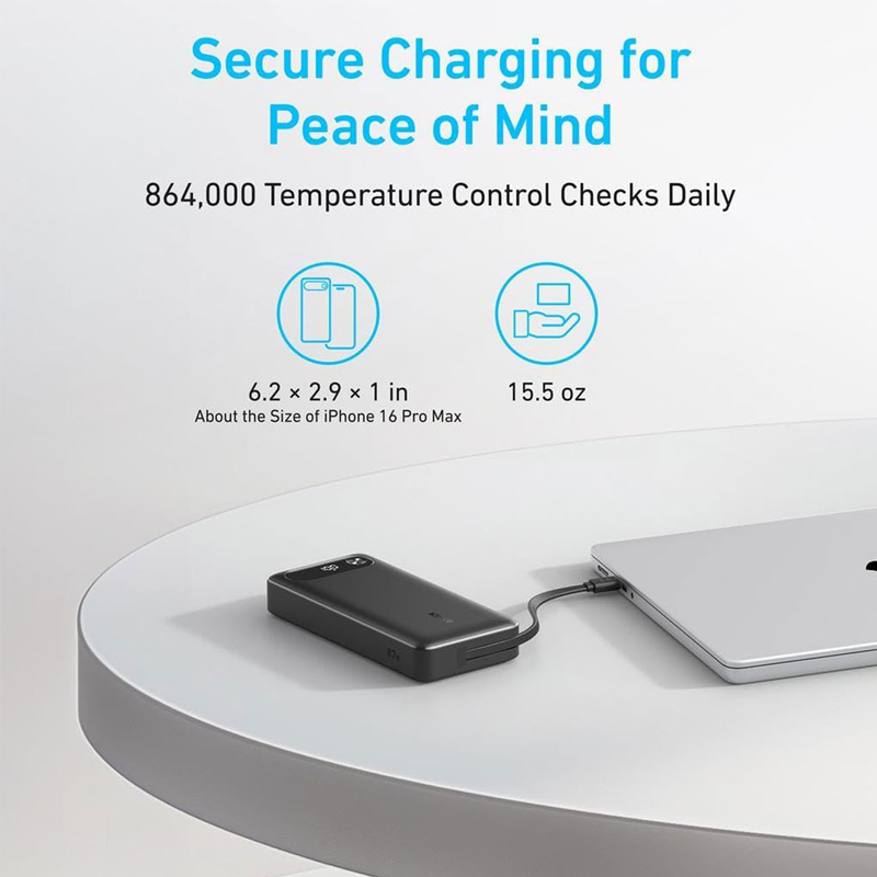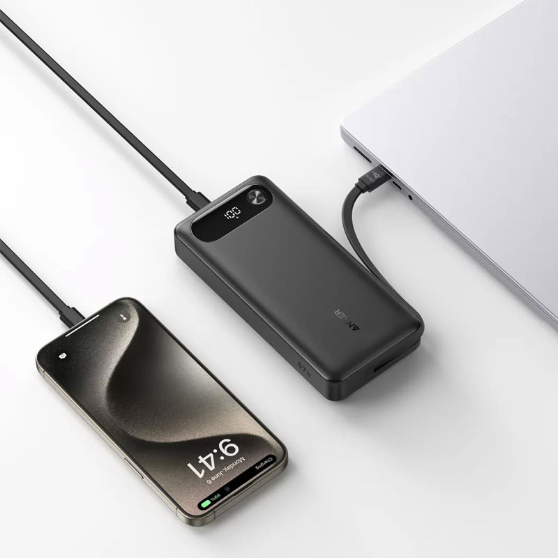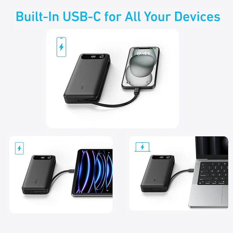 Anker Power Bank Built-in USB-C Cable 20000mAh A1383 Black