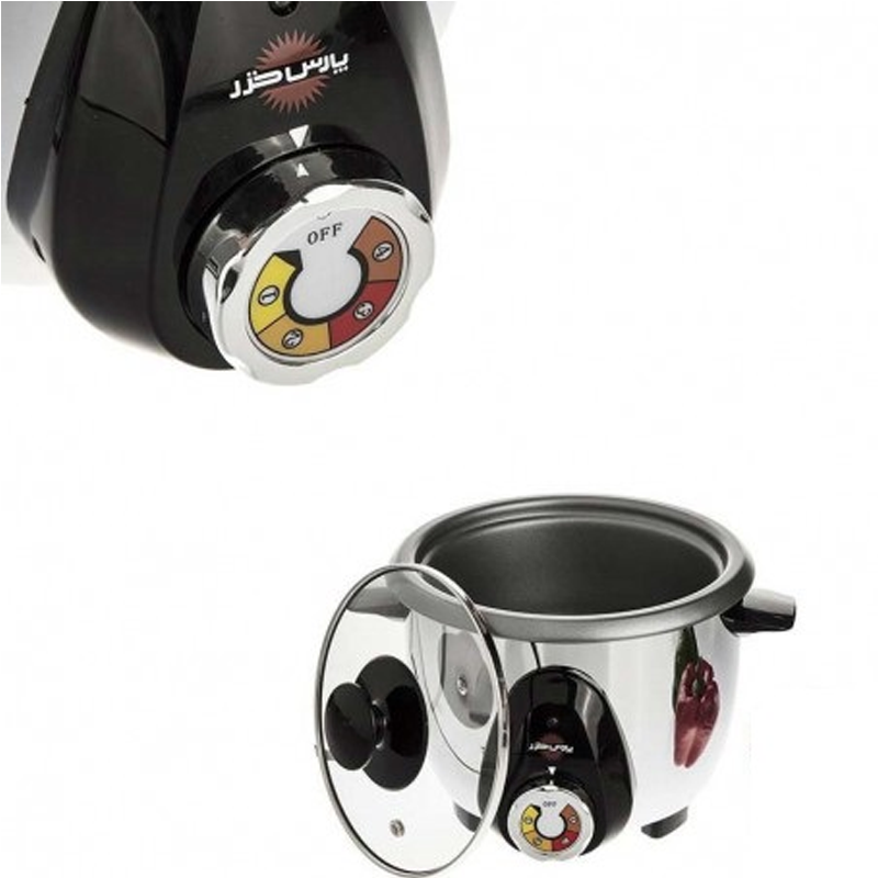 • سایر مشخصات: پخت برنج با درجات مختلف رنگ ته دیگ، داراي درب استيل ضد زنگ، دارای ترموستات های خارجی با دقت بالا جهت تنظیم حالت های مختلف پخت مواد غذایی و مصرف بهینه انرژی، استفاده از قطعات مقاوم در برابر حرارت، استفاده از سیم های نسوز جهت افزايش ايمني محصول، سيم جداشونده از محصول جهت حمل و نقل آسانتر، استفاده از ترمال فيوز جهت ايمني مضاعف و جلوگيري از هرگونه خطرات احتمالي